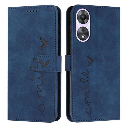 Para Oppo A58 / A78 Skin Feel Heart Funda de Cuero para Teléfono con Cordón Largo (Azul)