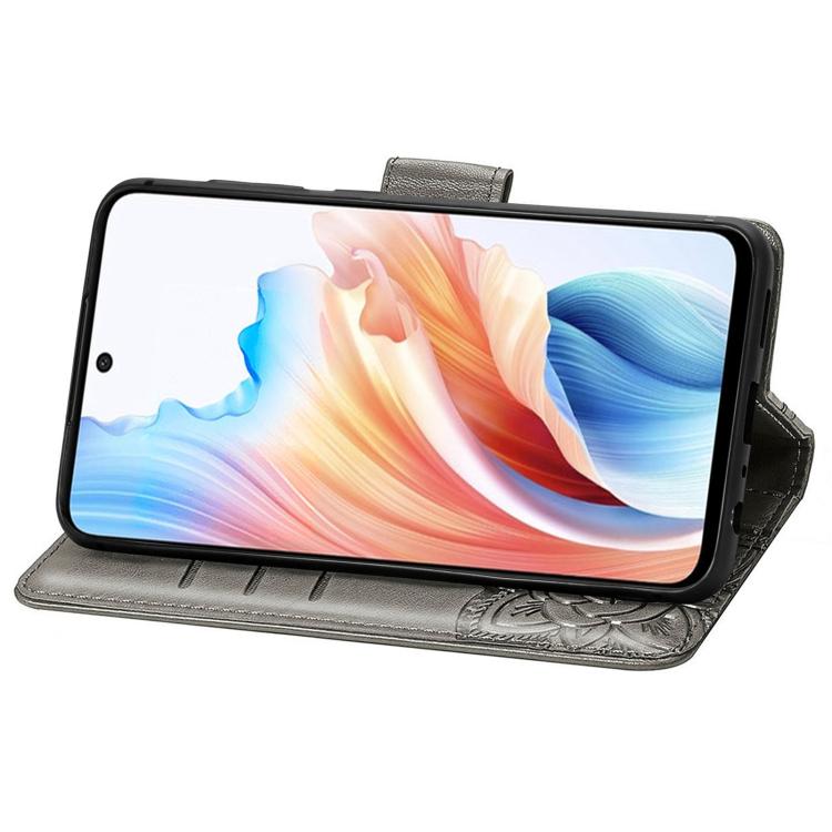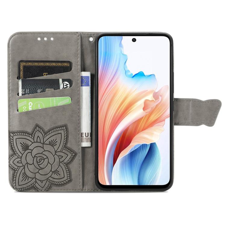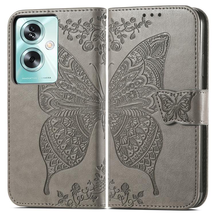 Para Oppo A79 5G / A2 5G Funda de Cuero con Tapa Horizontal En Relieve con Flor de Mariposa (Gris)