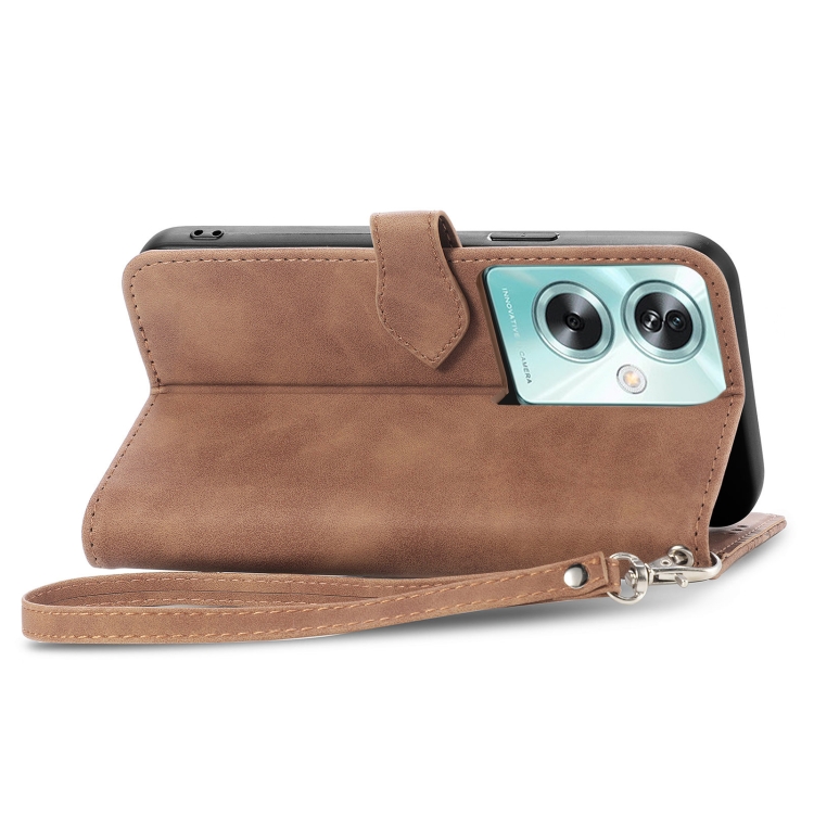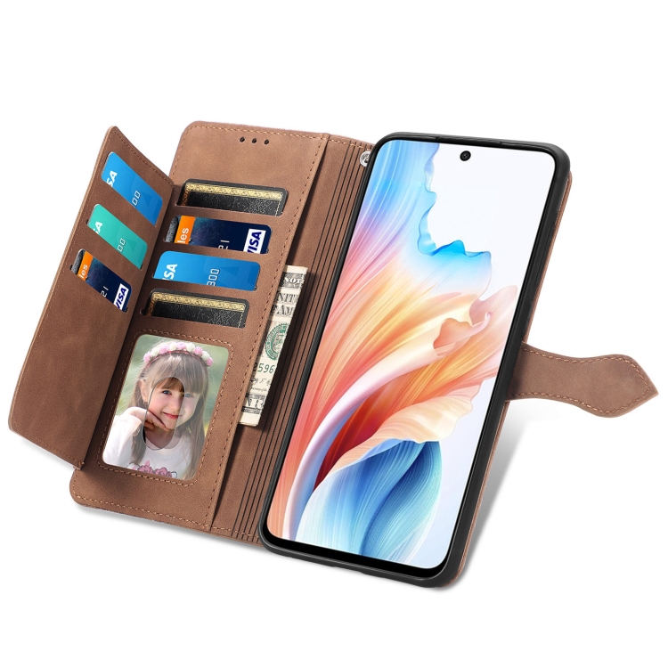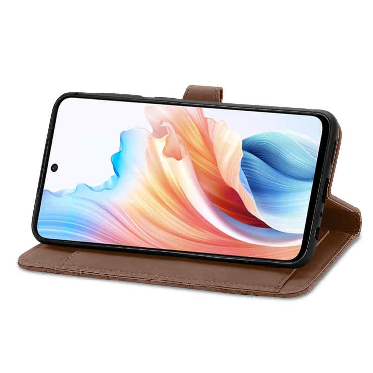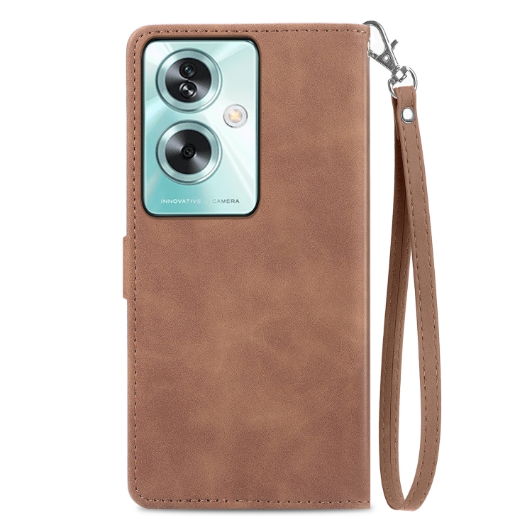 Para Oppo A79 5G / A2 5G Funda de Cuero para Teléfono con Cremallera y Flores En Relieve (Marrón)