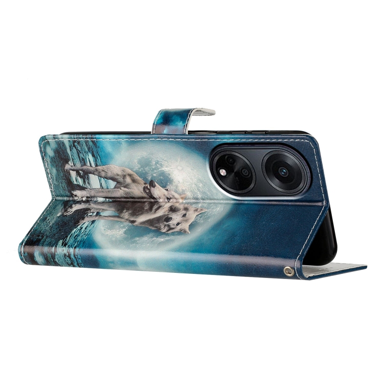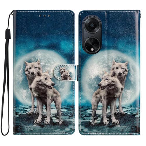 Para Oppo A98 Funda de Cuero con Dibujo Coloreado (Lobos Gemelos)