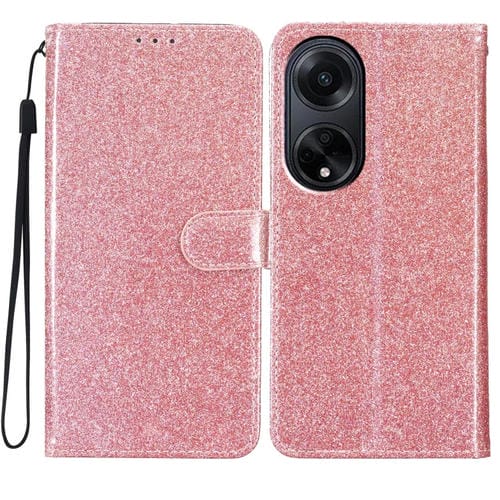 Para Oppo A98 Glitter Powder Flip Funda de Cuero para Teléfono (Oro Rosa)