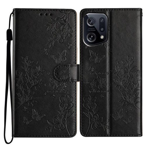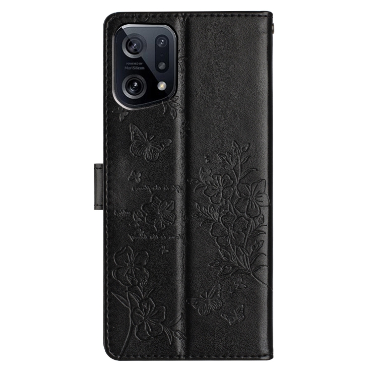 Para Oppo Find X5 Butterfly Love Flower Funda de Cuero para Teléfono En Relieve (Negro)
