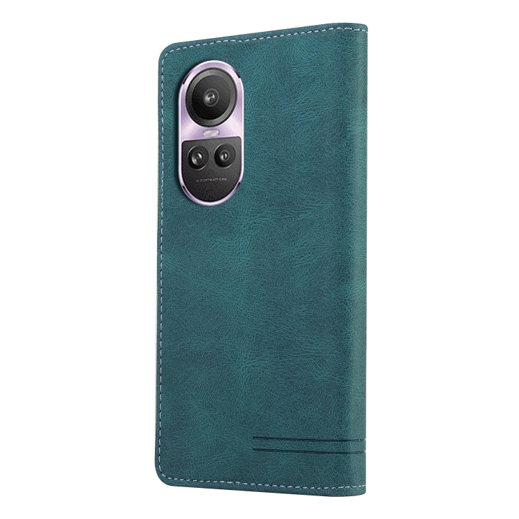 Para Oppo Reno10 Global Skin Feel Funda de Cuero con Tapa Horizontal con Cepillo Antirrobo y Soporte (Azul)