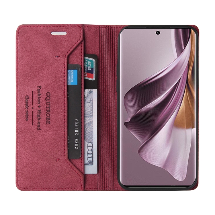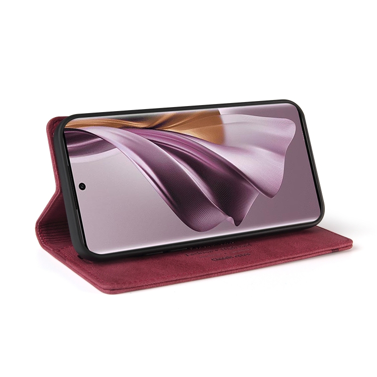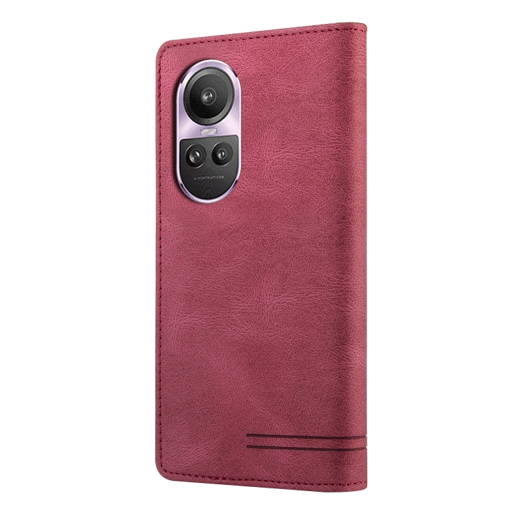 Para Oppo Reno10 Global Skin Feel Funda de Cuero con Tapa Horizontal con Cepillo Antirrobo y Soporte (Rojo Vino)