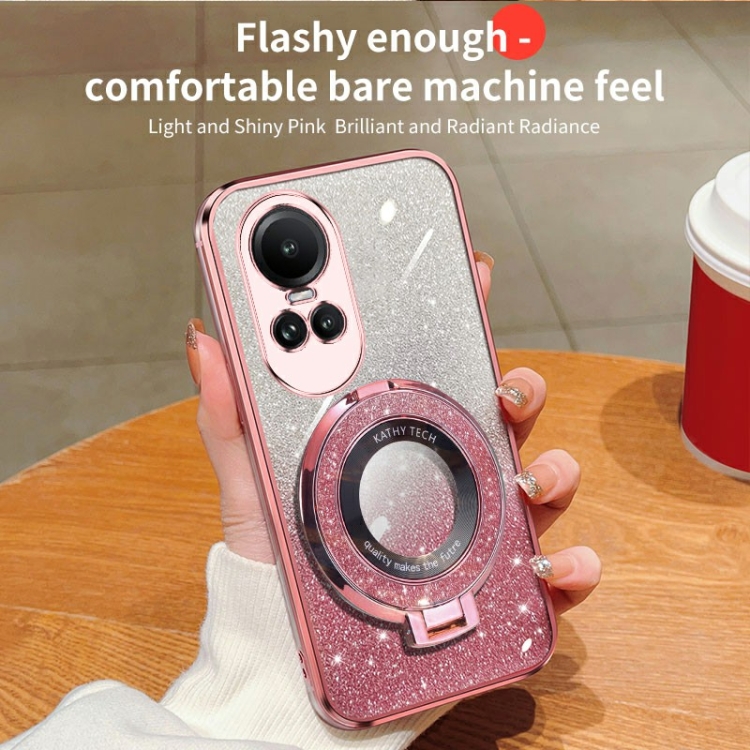 Para Oppo Reno10 Pro Funda para Teléfono de TPU con Soporte Redondo y Brillo Degradado Plateado Global (Plata)