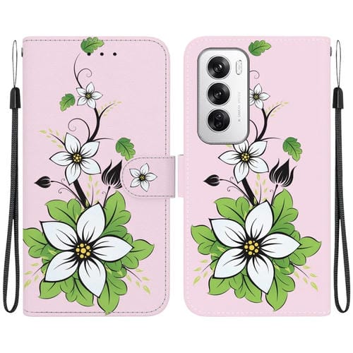 Para Oppo Reno12 5G Funda de Teléfono de Cuero con Dibujo Coloreado con Textura de Cristal Global (Lirio)