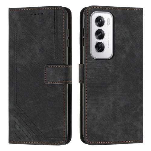 Para Oppo Reno12 5G Funda de Teléfono de Cuero con Patrón de Rayas Global Skin Feel y Cordón Largo (Negro)