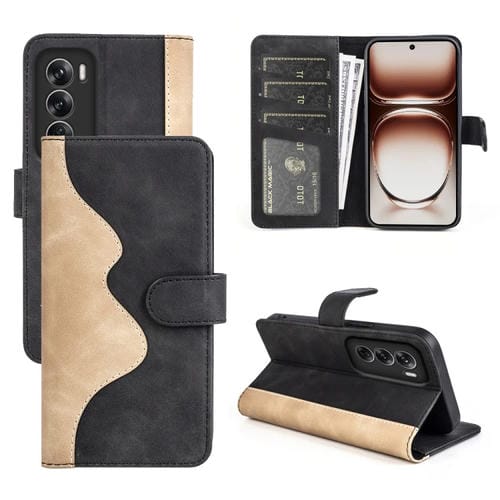 Para Oppo Reno12 5G Funda de Teléfono de Cuero con Tapa Horizontal con Costura Global (Negro)