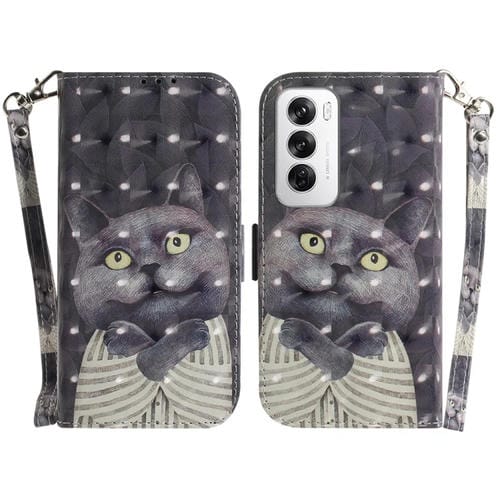 Para Oppo Reno12 5G Global 3D Funda de Cuero con Tapa Horizontal de Color (Hug Cat)