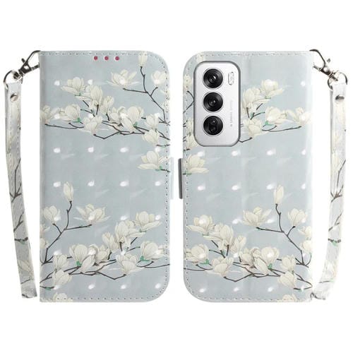 Para Oppo Reno12 5G Global 3D Funda de Cuero con Tapa Horizontal de Color (Magnolia)