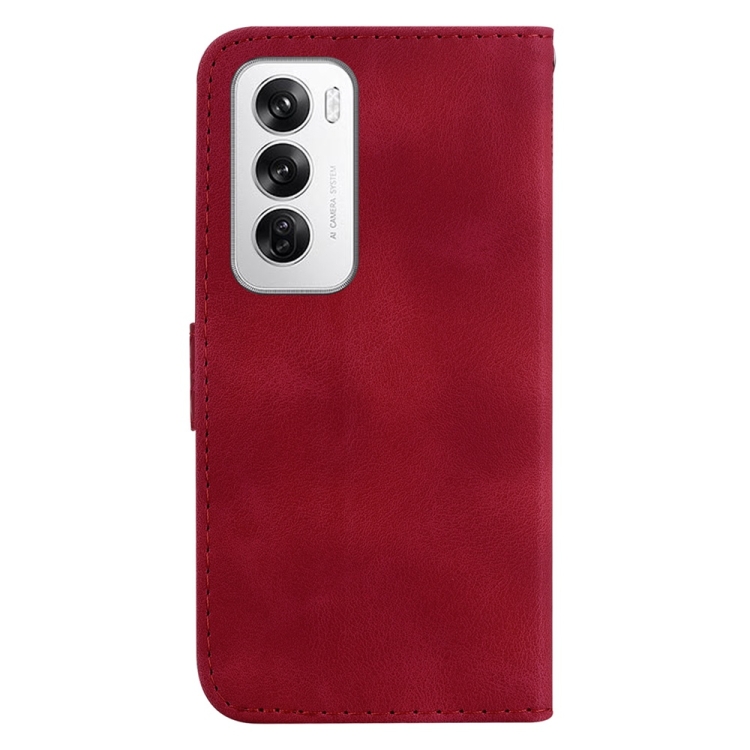 Para Oppo Reno12 5G Global Funda de Cuero En Relieve con Forma de 7 (Rojo)