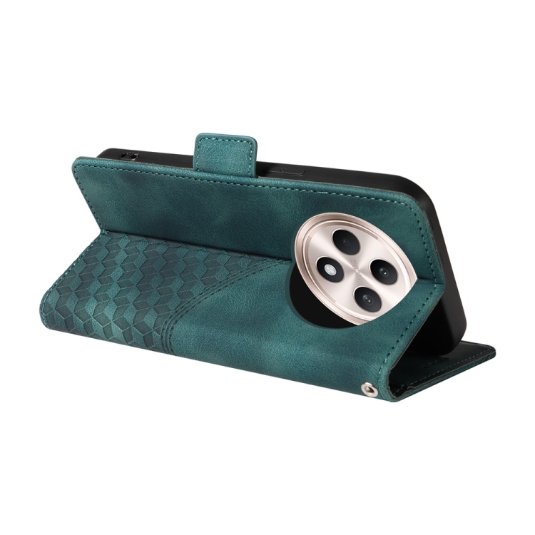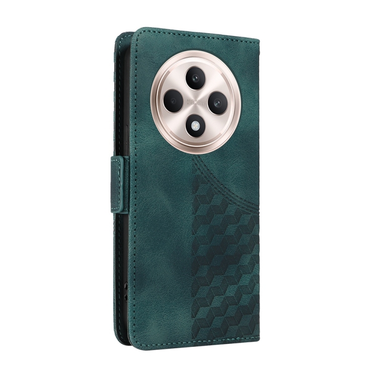 Para Oppo Reno12 F 5G Funda de Teléfono de Cuero Estrellado con Rombo En Relieve Global (Verde)