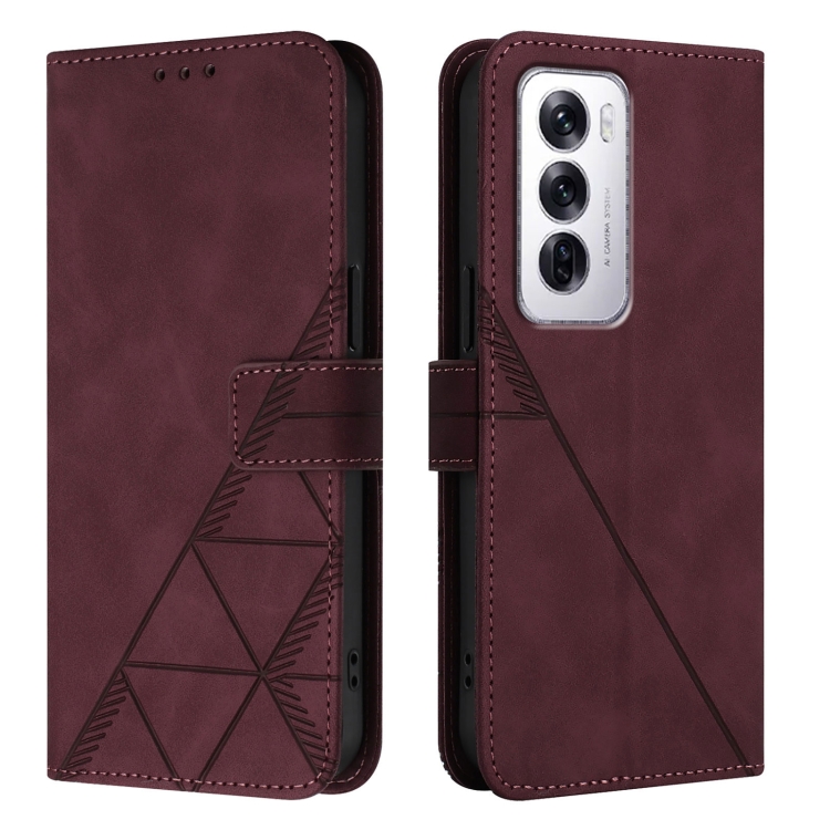 Para Oppo Reno12 Global Crossbody Funda para Teléfono de Cuero con Tapa En Relieve 3D (Rojo Vino)