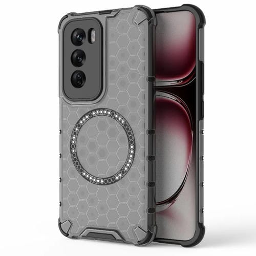 Para Oppo Reno12 Global Honeycomb Magnetic Ring Funda para Teléfono a Prueba de Golpes (Negro)