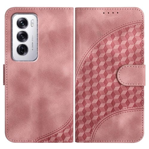 Para Oppo Reno12 Global Yx0060 Funda de Cuero para Teléfono con Relieve y Cabeza de Elefante con Cordón (Rosa)