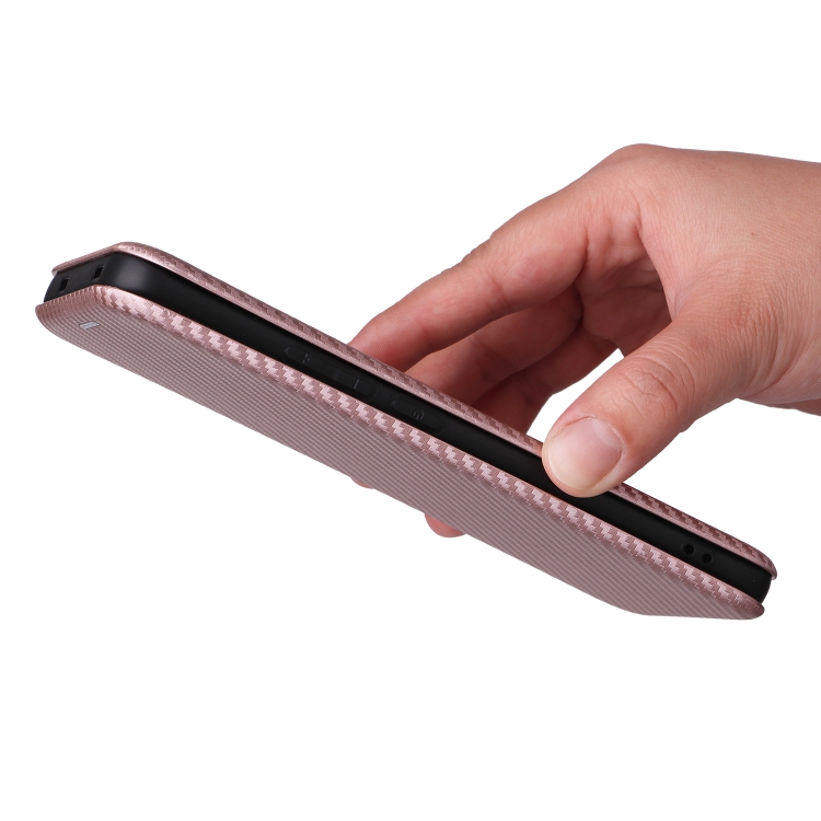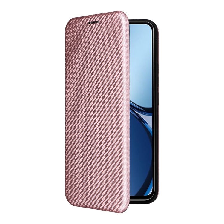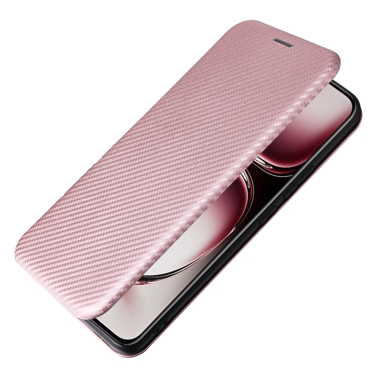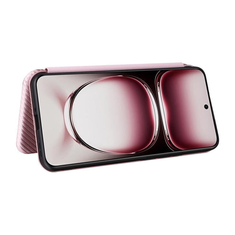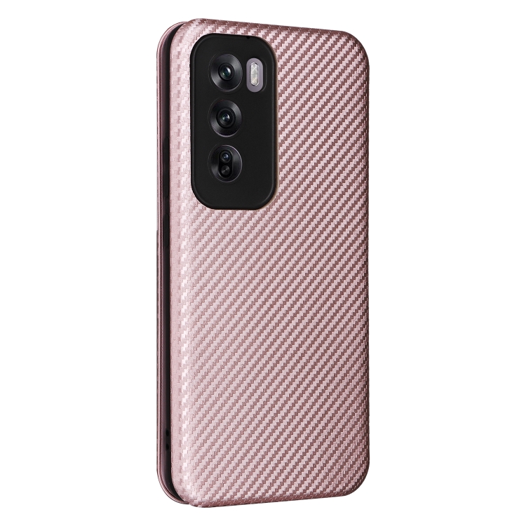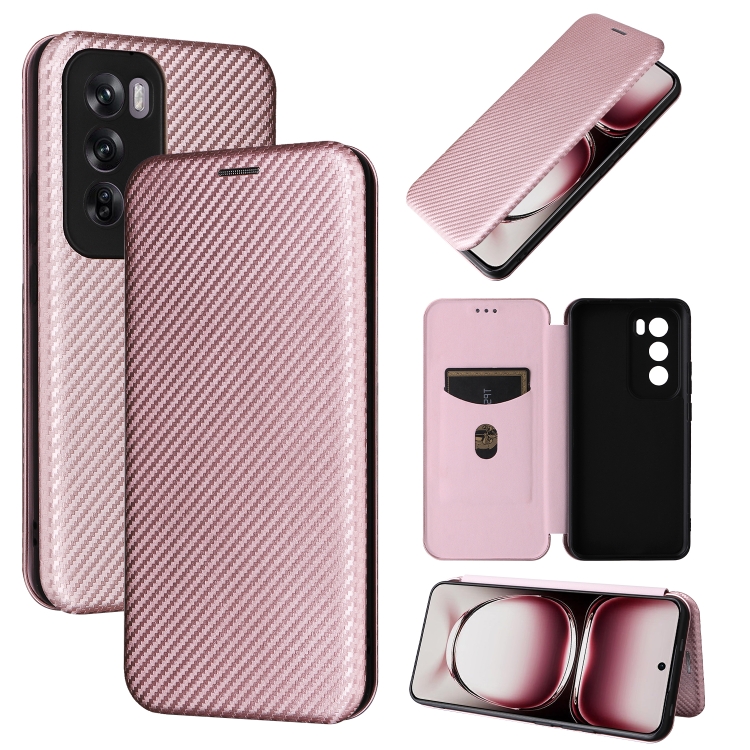Para Oppo Reno12 Pro 5G Funda de Cuero con Tapa con Textura de Fibra de Carbono Global (Rosa)