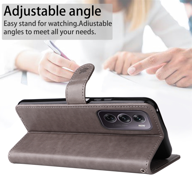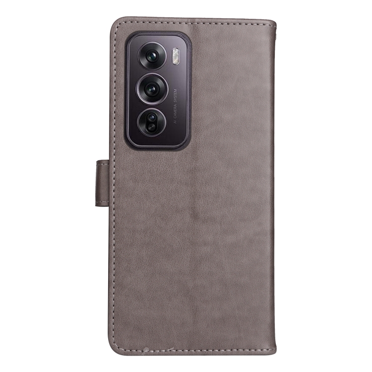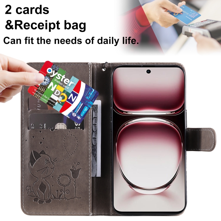 Para Oppo Reno12 Pro 5G Global Cat And Bee Funda de Cuero con Tapa En Relieve (Gris)