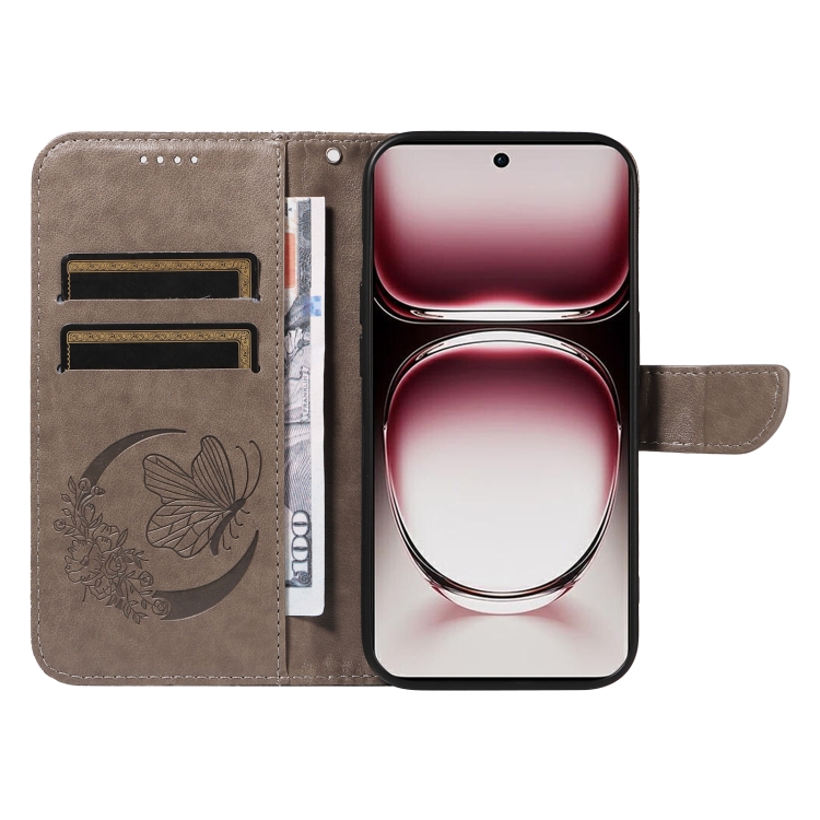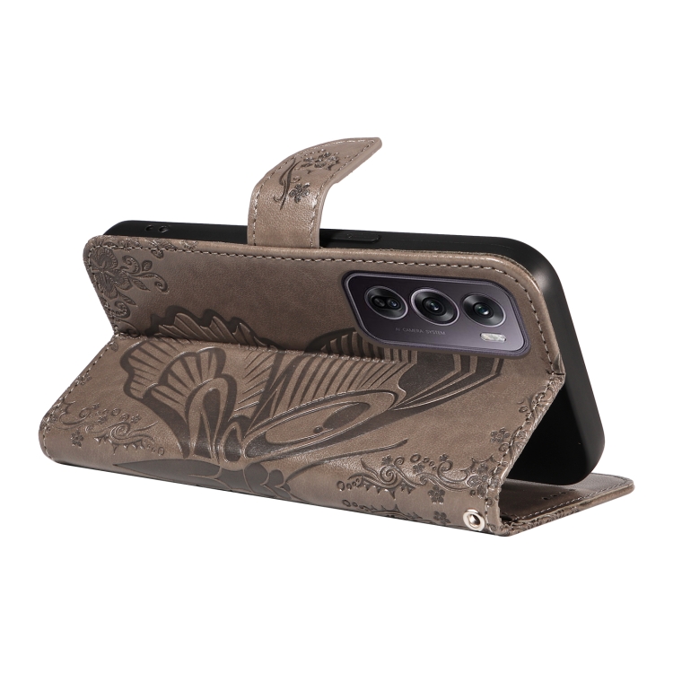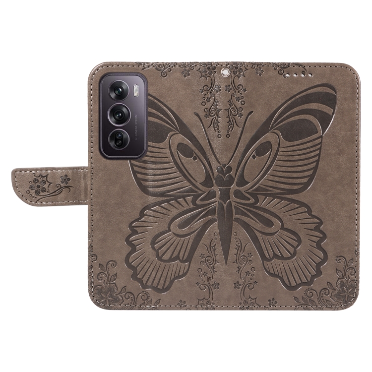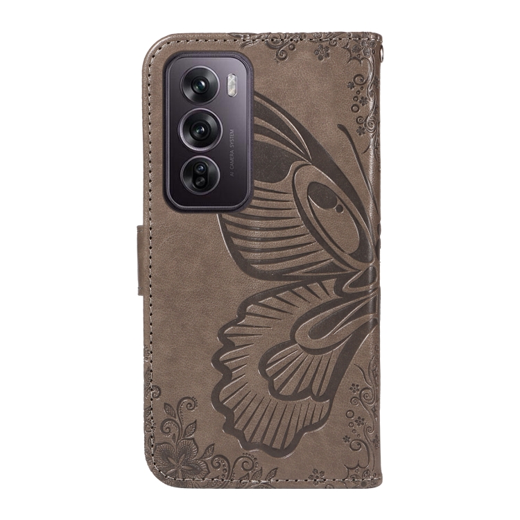 Para Oppo Reno12 Pro 5G Global Swallowtail Butterfly Funda de Cuero En Relieve para Teléfono (Gris)