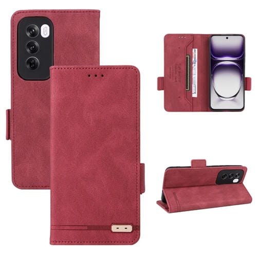 Para Oppo Reno12 Pro Funda de Cuero para Teléfono con Cierre Magnético Global (Rojo)