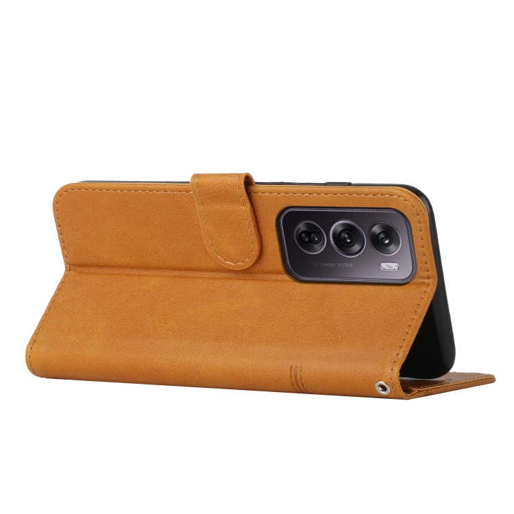 Para Oppo Reno12 Pro Funda de Teléfono de Cuero con Hebilla y Textura de Pantorrilla con Costura Global (Amarillo)