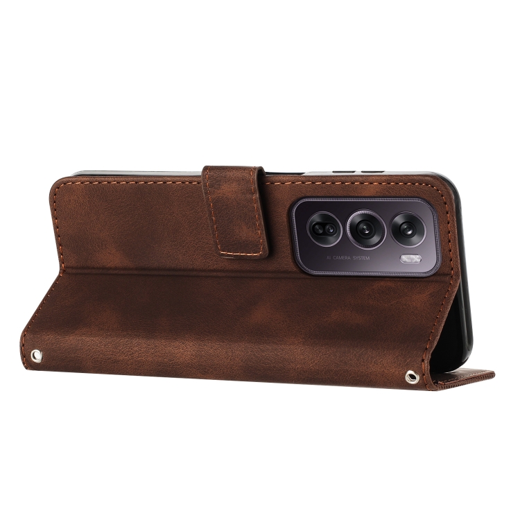 Para Oppo Reno12 Pro Global Dream Triangle Funda de Cuero para Teléfono con Cordón (Marrón)