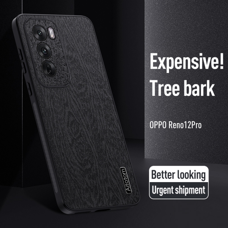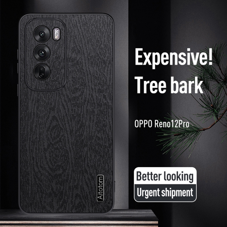 Para Oppo Reno12 Pro Global Tree Bark Funda de Cuero para Teléfono a Prueba de Golpes (Negro)