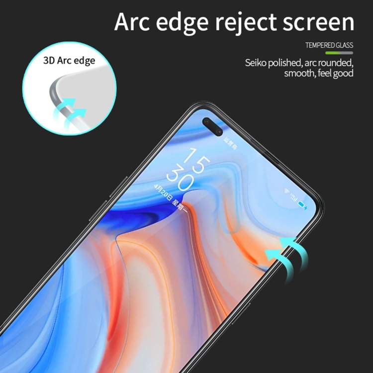Para Oppo Reno4 Z Pinwuyo 9H Cintura Curva Curdada 3D Película de Vidrio a Prueba de Explosiones (Negro)
