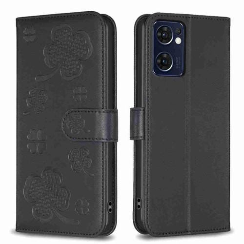 Para Oppo Reno7 5G / Find X5 Lite Funda de Cuero con Relieve de Cuatro Hojas para Teléfono (Negro)