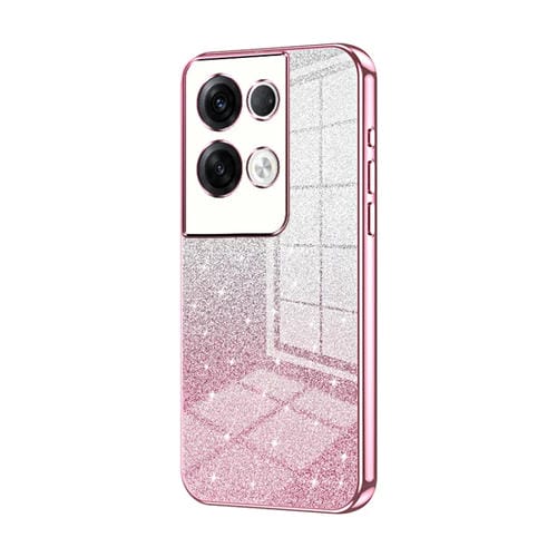 Para Oppo Reno8 Pro + Estuche para Teléfono Galvanizado con Polvo de Brillo Degradado (Rosa)