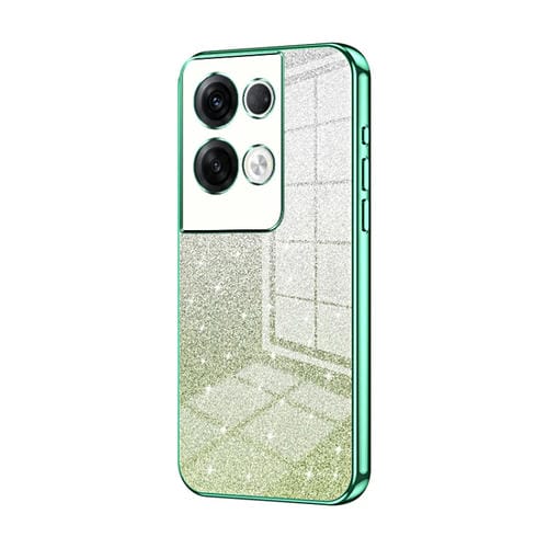 Para Oppo Reno8 Pro + Estuche para Teléfono Galvanizado con Polvo de Brillo Degradado (Verde)
