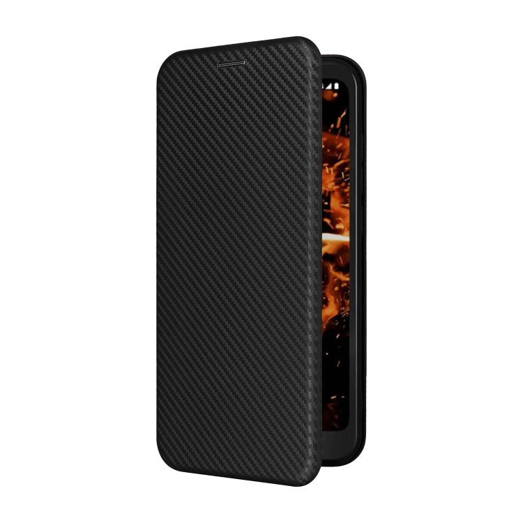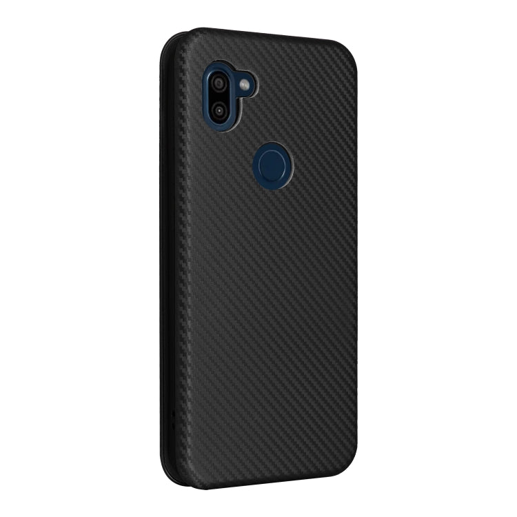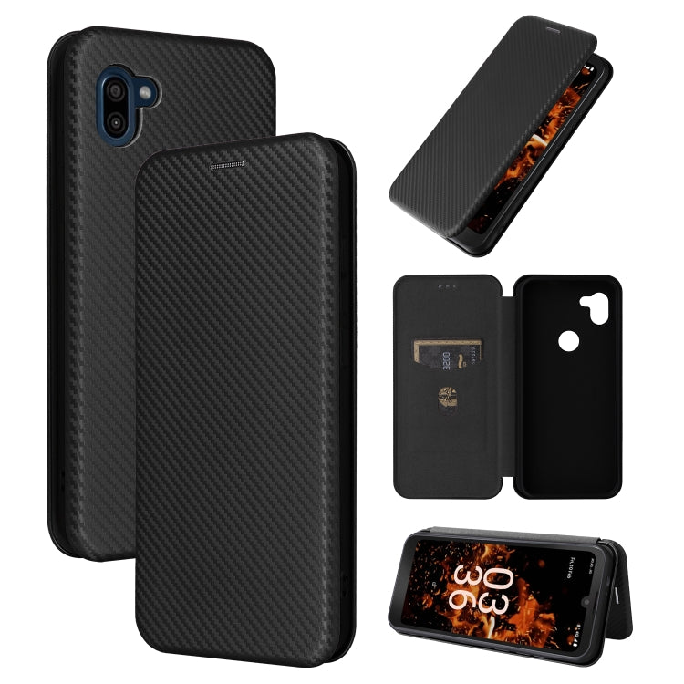 Funda de Cuero con Tapa para Orbic Fun + 4G con Textura de Fibra de Carbono (Negro)