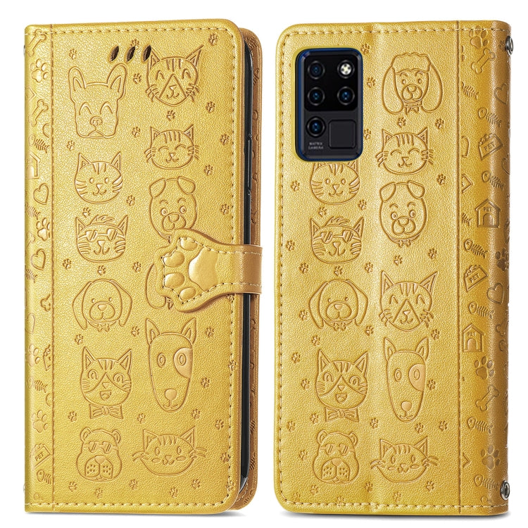 For Oukitel C21, lovely cat, cat and dog, embossed horizontal leather case, with holder & card slots & wallet & card holder & lanyard(yellow)