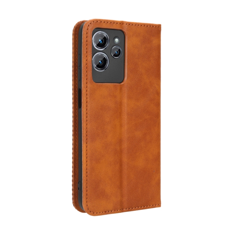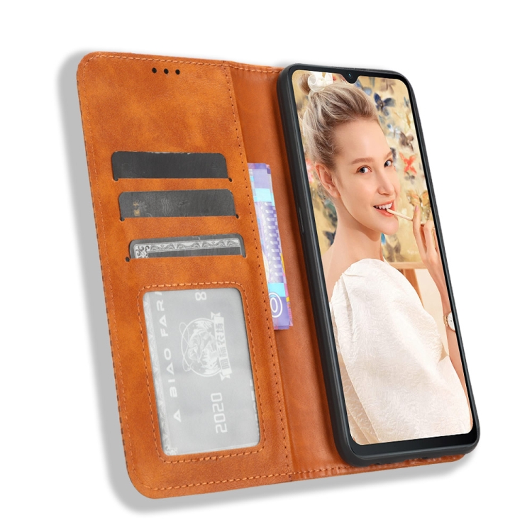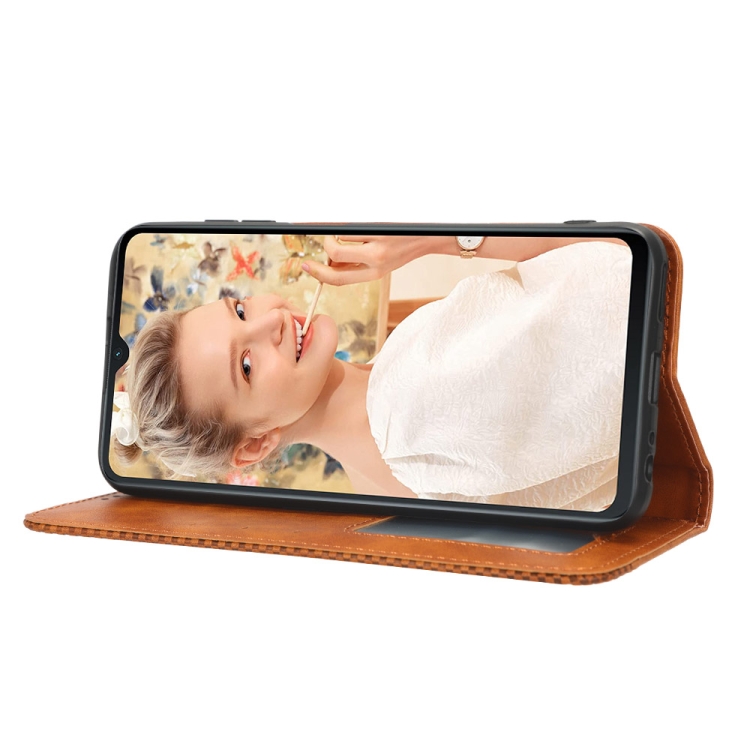 Funda de Cuero para Oukitel C32 con Hebilla Magnética y Textura Retro (Marrón)
