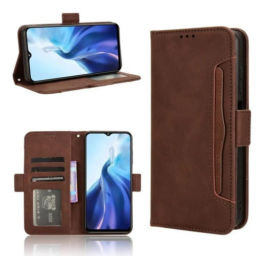 Funda de Cuero para Oukitel C35 / C36 con Textura Becerro y Ranuras para Tarjetas (Marrón)
