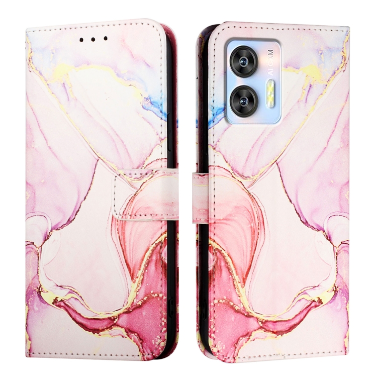 Funda de Cuero para Oukitel C36 / C35 Pt003 con Tapa y Patrón Mármol (Oro Rosa)