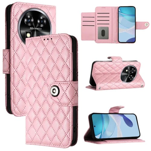 Funda para Oukitel C37 de Cuero con Tapa, Textura Rómbica y Cordón (Rosa)