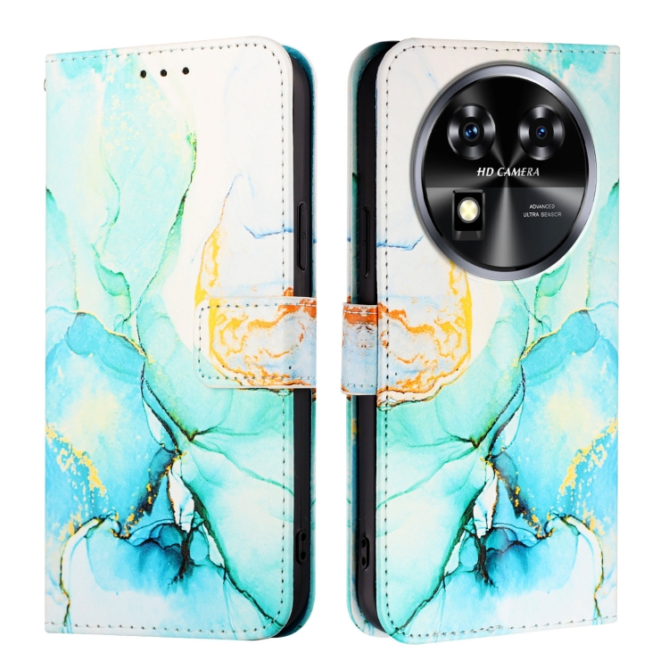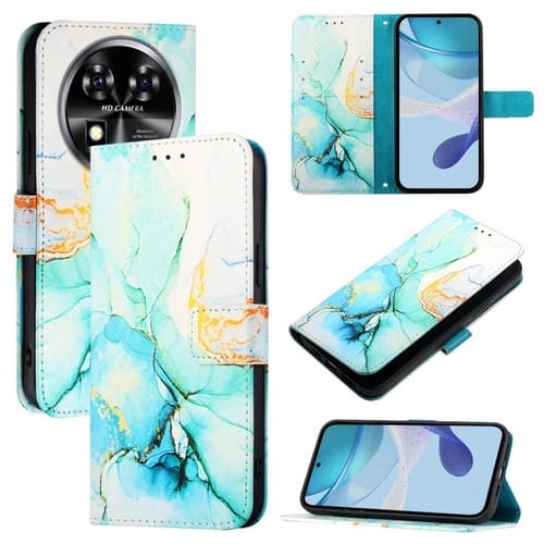Funda de Cuero con Tapa para Oukitel C37 Pt003 con Patrón de Mármol (Verde)