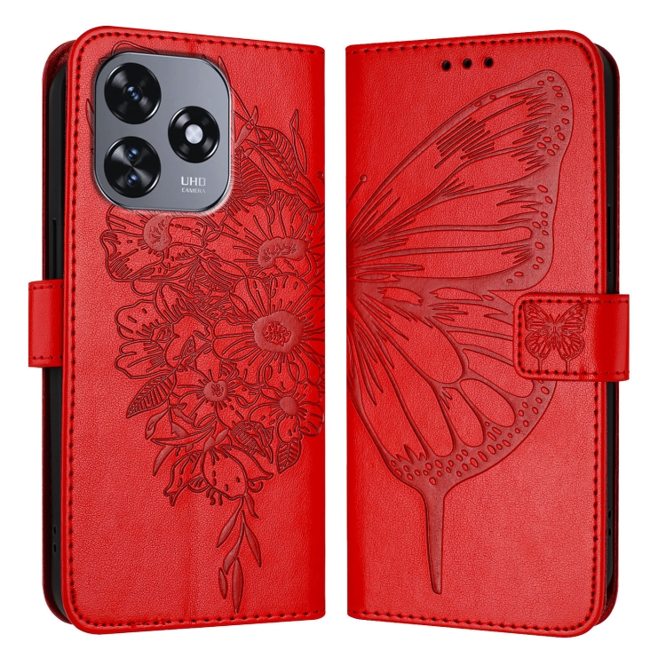 Funda de Cuero para Oukitel C51 con Mariposa en Relieve (Rojo)