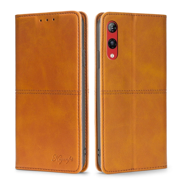 Funda de Cuero para Rakuten Hand 4G con Tapa Horizontal Magnética y Textura de Vaca (Marrón Claro)