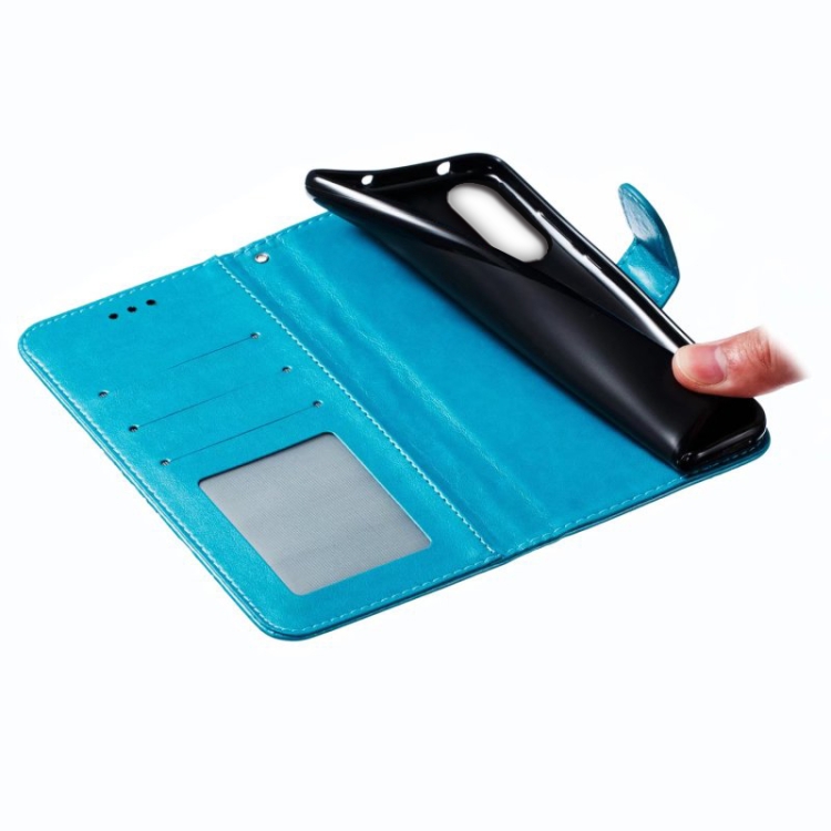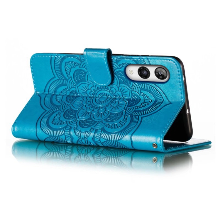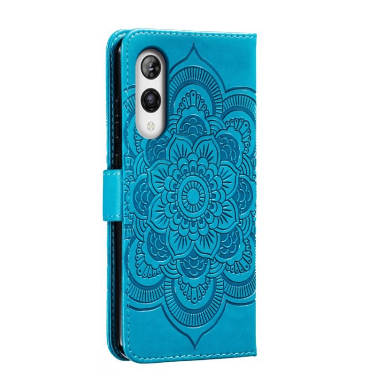 Funda de Cuero para Rakuten Hand 5G con Patrón en Relieve Sun Mandala (Azul)