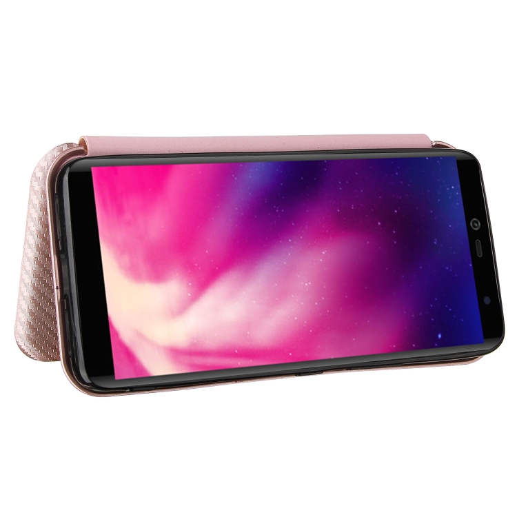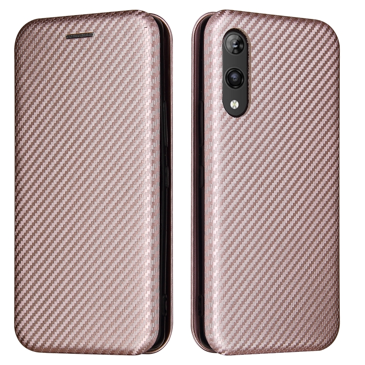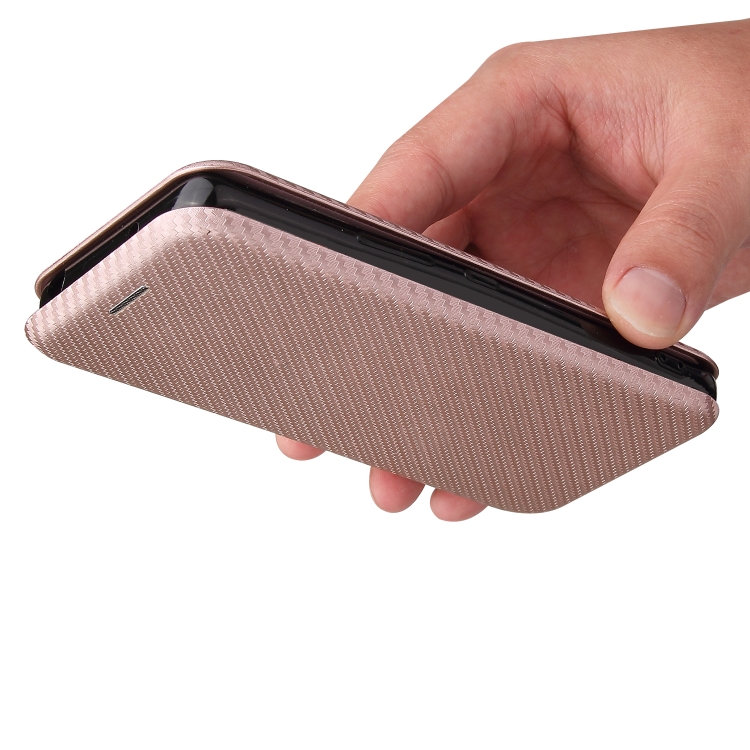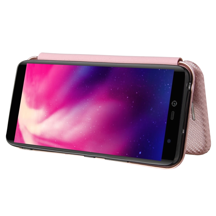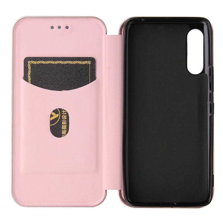 Funda para Rakuten Hand con Textura Fibra de Carbono Flip Horizontal Magnético TPU + PC y Cuero PU con Ranura para Tarjeta (Rosa)