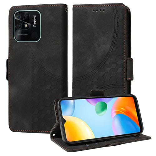 Para Redmi 10C / 10 India Funda para Teléfono de Cuero Estrellado con Rombos En Relieve (Negro)