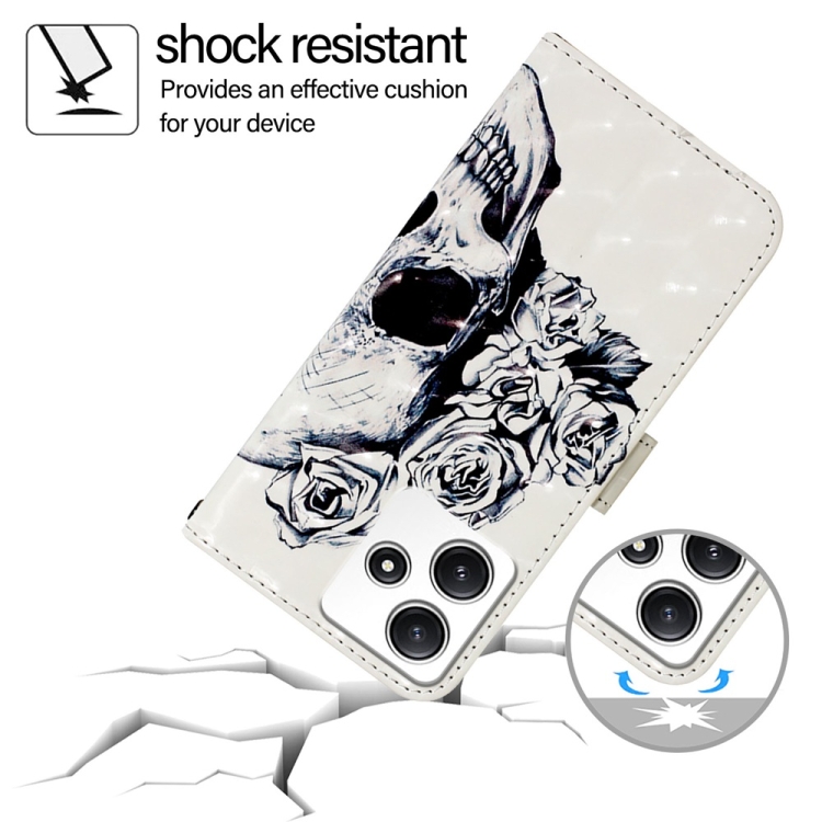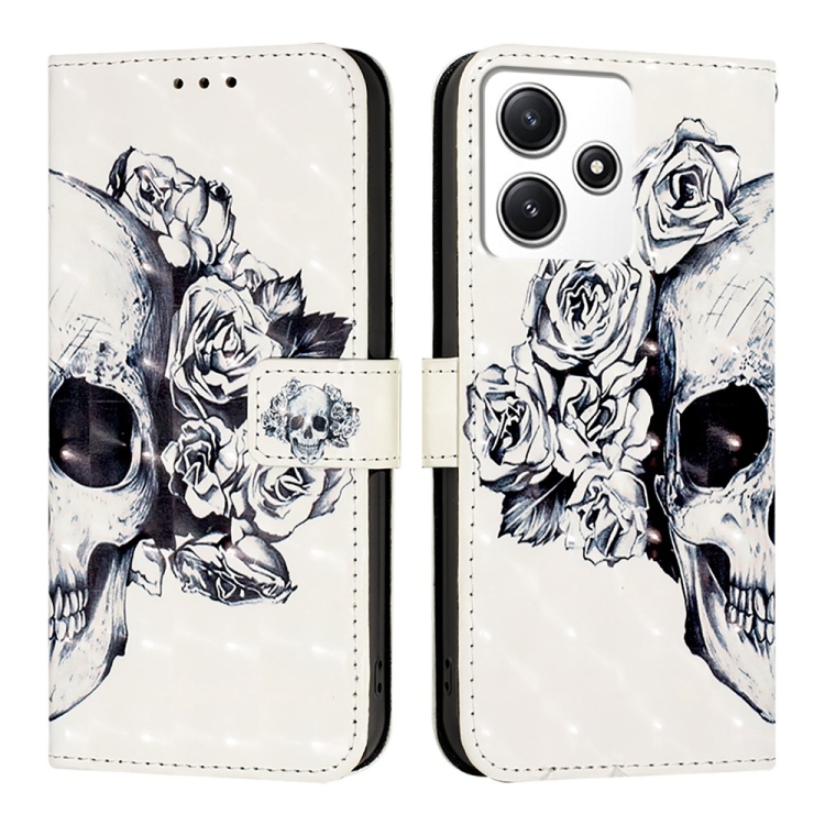 Para Redmi 12 4G / 5G Global India / Note 12R Funda para Teléfono de Cuero con Tapa Horizontal con Pintura 3D (Calavera)