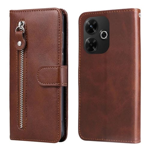 Para Redmi 13 4G / Redmi Note 13R Funda para Teléfono de Cuero con Cremallera y Textura de Becerro a la Moda (Marrón)