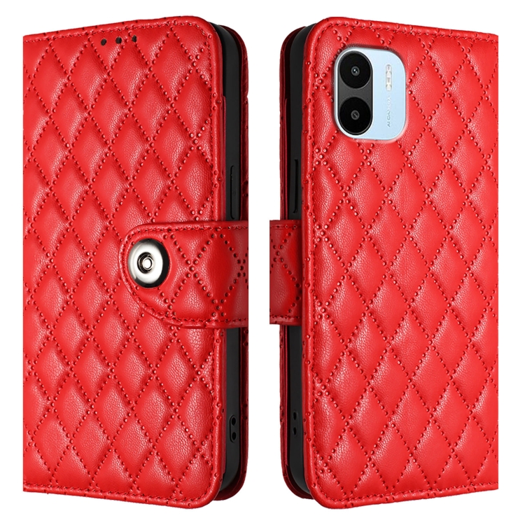 Para Redmi A1 / A2 Funda para Teléfono de Cuero con Tapa con Textura Rómbica y Cordón (Rojo)