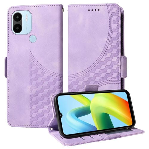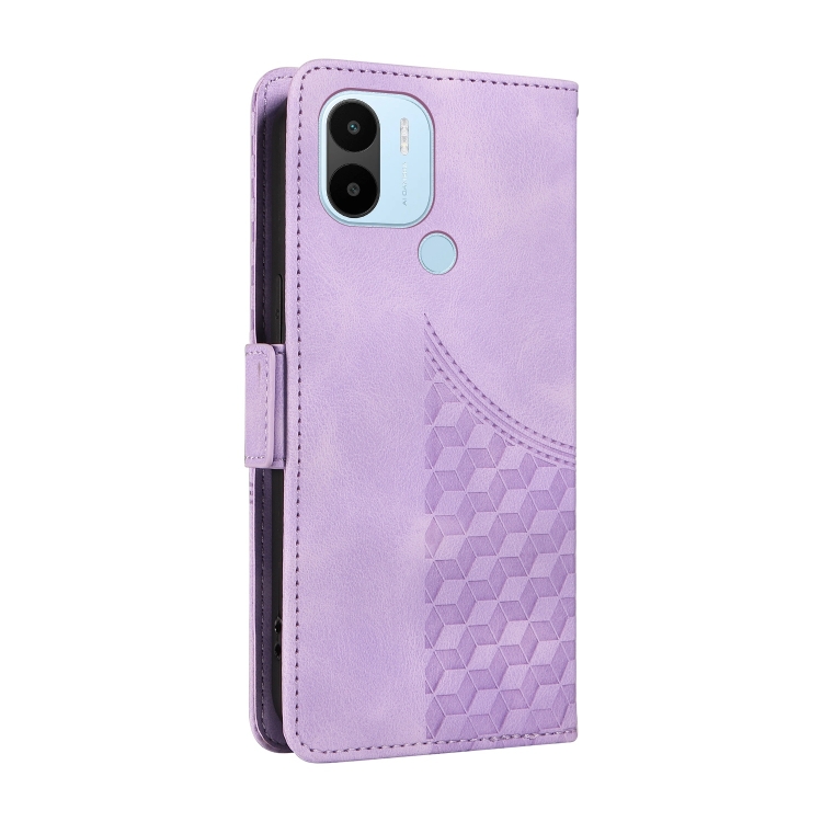 Para Redmi A1+ / A2+ Funda para Teléfono de Cuero Estrellado con Rombos En Relieve (Púrpura)