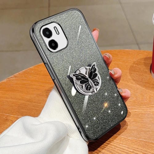 Para Redmi A1 Funda para Teléfono de TPU con Soporte de Mariposa con Brillo Degradado Plateado (Negro)