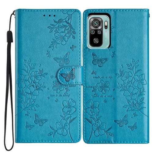 Para Redmi Note 10 4G Funda de Cuero para Teléfono con Mariposas y Flores (Azul)