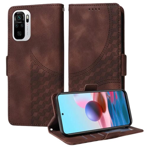 Para Redmi Note 10 4G India Funda para Teléfono de Cuero Estrellado con Rombos En Relieve (Marrón)