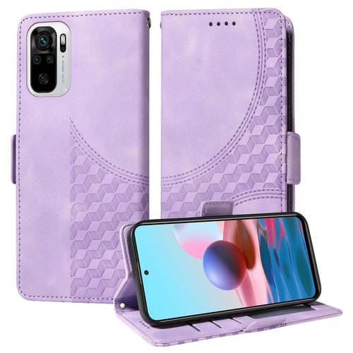 Para Redmi Note 10 4G India Funda para Teléfono de Cuero Estrellado con Rombos En Relieve (Púrpura)